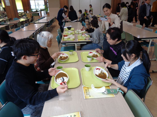 また、お昼には、皆さん学食で思い思いの食事をおいしく頂きました。