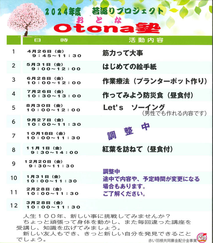 昨年度も行いましたが、2024年度 若返りプロジェクト Otona(おとな)塾を、下記の内容で開催いたしました。