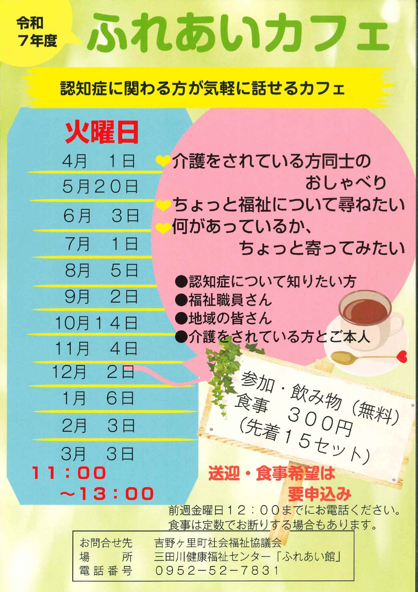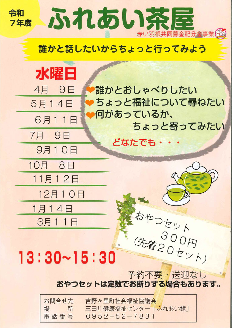 令和7年4月より新しく、ふれあい茶屋をはじめています。
