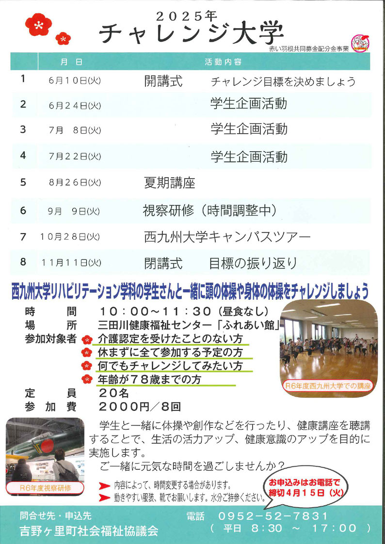 ・訓練問い合わせ先:吉野ヶ里町社会福祉協議会(TEL:0952-52-7831)