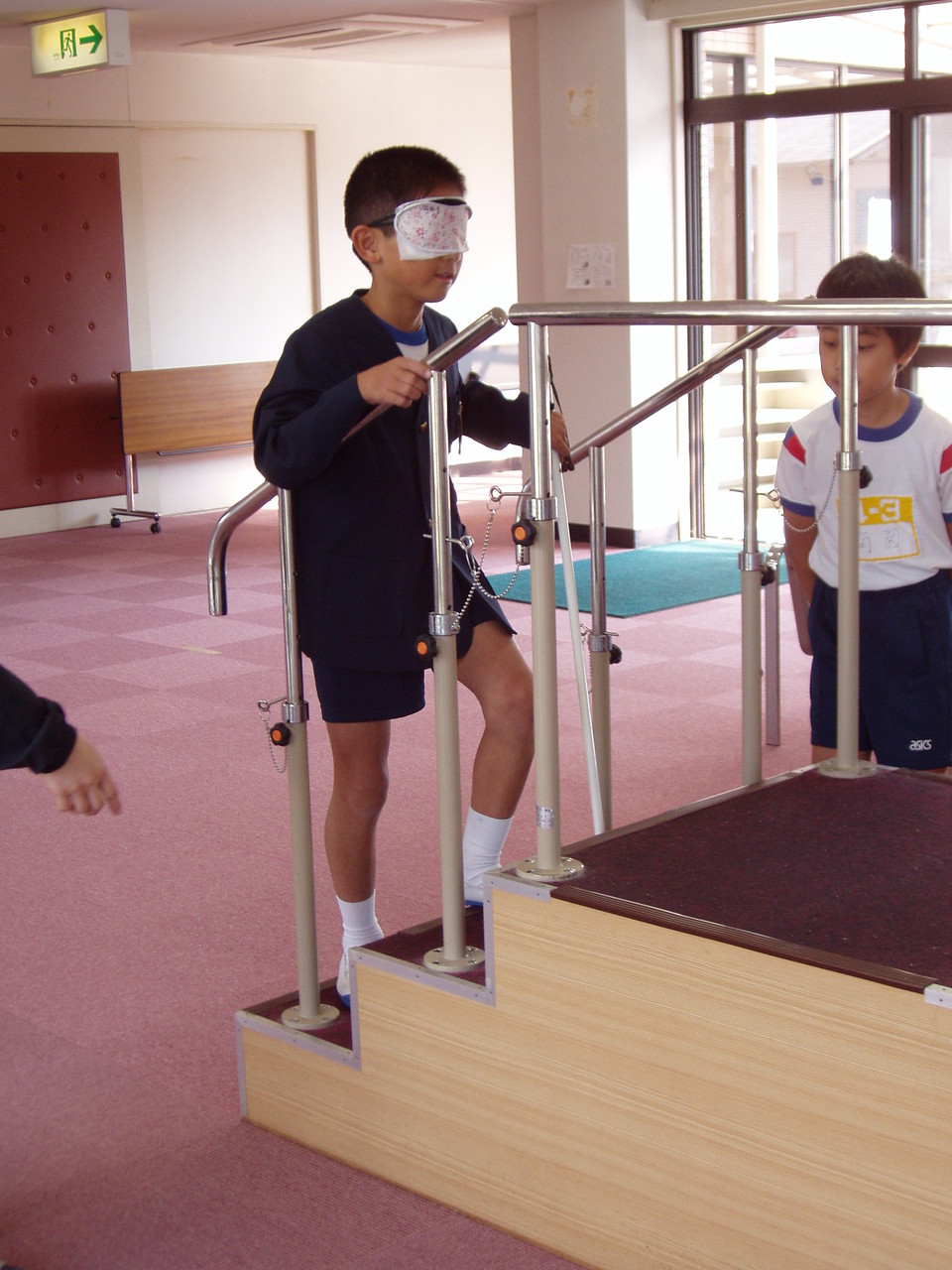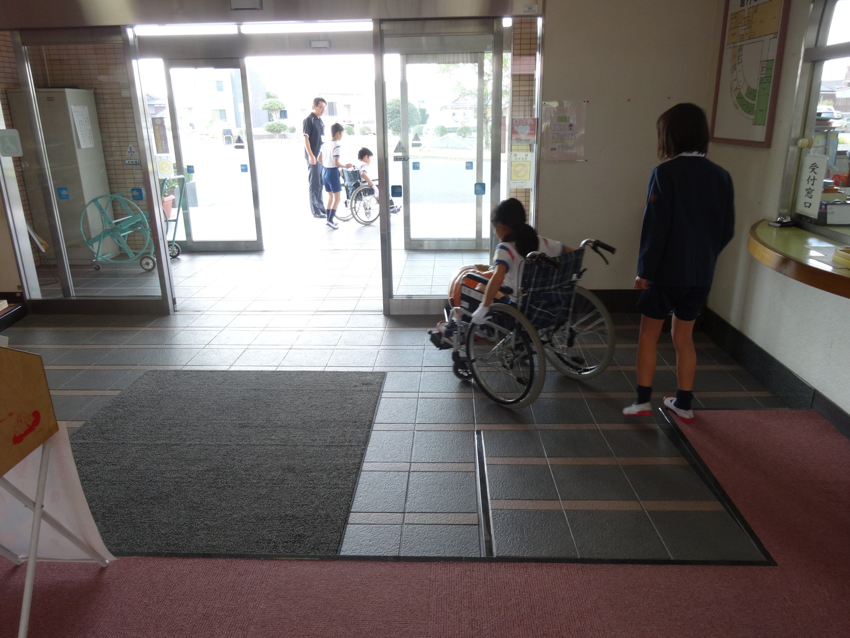 体験では、バリアフリーになっている福祉センターの中や駐車場を回ったりしました。